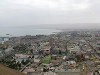 The town we went to was called Arica, Chile. It's the northern most big town in Chile and was the closest for us to get to. It was a very nice town and we had fun exploring the city. It was on the beach but also sort of in a desert. It is winter now here in South America so it wasn't tourist season and we were practically the only North Americans there. Everyday started off cloudy then became sunny around lunch time and warmed up to about 70 degrees like clockwork. So it wasn't exactly swimming weather but very nice for strolling around. Even though we didn't go swimming in the ocean it was just nice to sit on the beach, see the waves and smell that salty, ocean smell. And we did a lot of walking over the three days we were there...a couple miles each day probably. The city was built perfectly for walking everywhere...so we did just that...got a map and walked everywhere.